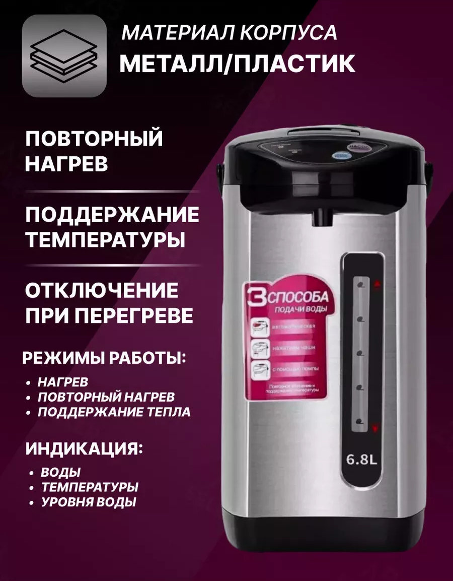 Термopot MARWA – сочетание стильного дизайна и функциональности! Удобная ручка, прочный корпус из нержавеющей стали, термостойкий пластик. Функция повторного кипячения и поддержание оптимальной температуры делают его идеальным помощником в быту. Элегантно смотрится и практичен в использовании – ваш идеальный выбор!