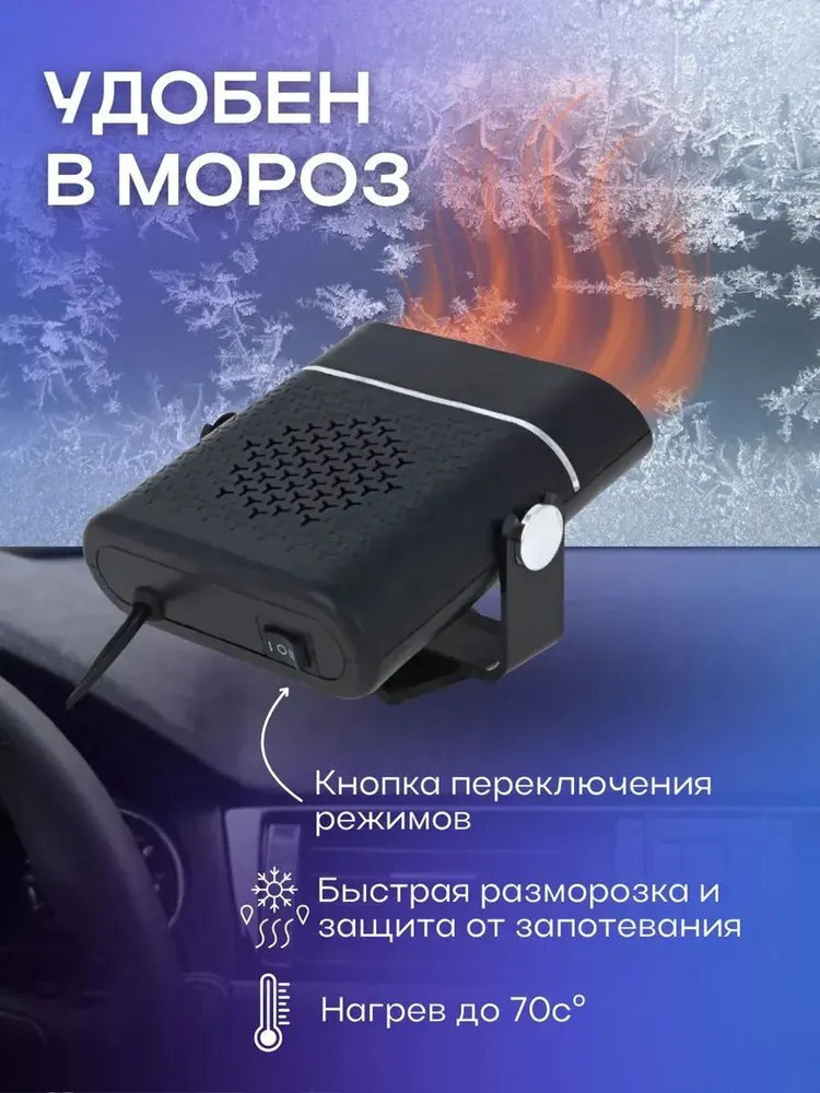 Обогреватель работает как миниатюрный отопительный прибор, который не только согревает, но и поддерживает комфортную температуру в межсезонье. Кроме того, он эффективно предотвращает запотевание окон. Благодаря мощному вентилятору, тепло равномерно распределяется по всему салону, обеспечивая максимальный комфорт во время поездки.
