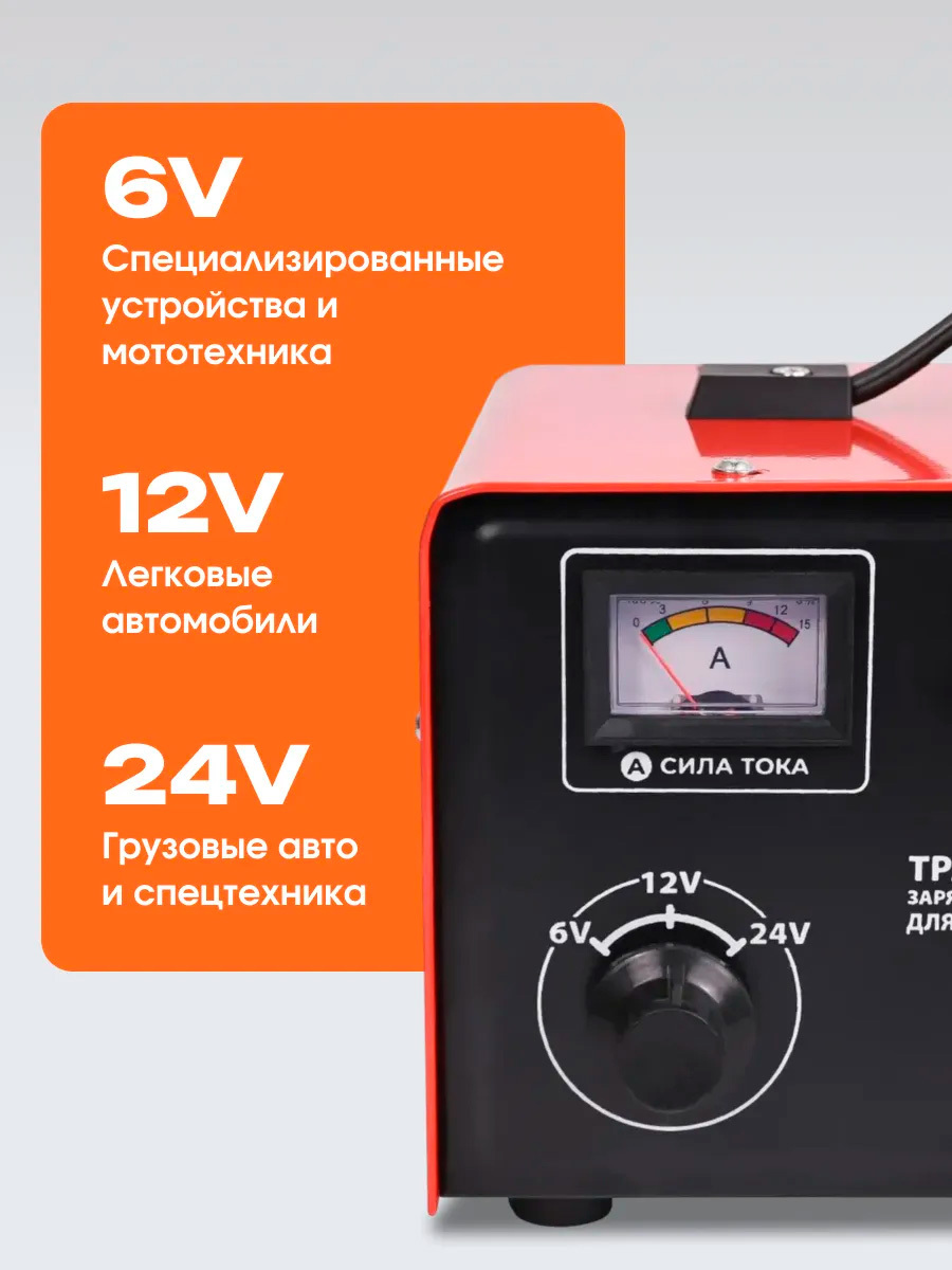 Продукт отлично подойдет как для повседневного использования в гараже, так и в дороге. Трансформаторная система устройства гарантирует безопасное восстановление заряда, а функция пускового режима поможет запустить двигатель при разряженном аккумуляторе. Такой аксессуар станет незаменимым помощником каждому водителю.